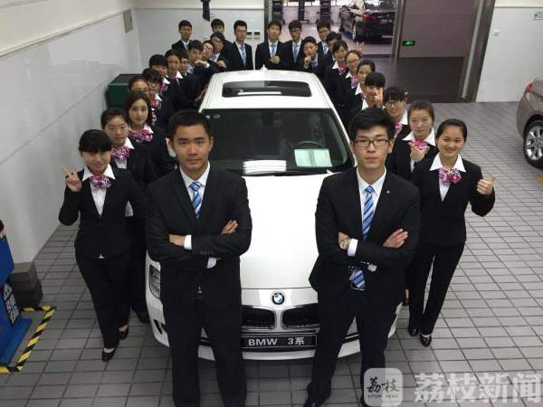 在南京金陵高等职业技术学校汽车技术系的实训楼,有十几辆高档轿车供师生练手。汽车营销与服务专业的学生身着白衬衫、黑西装,在这里,他们的站、立、行均经过专业的训练,服务意识和业务能力接受过长期的培养。