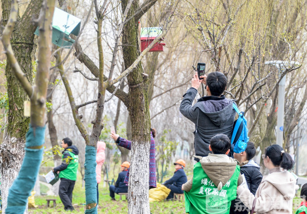 借助互联网、大数据等现代技术,今天主办方线上线下同时开展了义务植树、树木和绿地认养、爱绿护巢鸟笼DIY等活动。