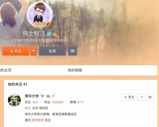 长安街知事注意到,柯洁的微博近期已关注了清华大学,如果顺利通过公示,他将于今年下半年赴清华园报到。