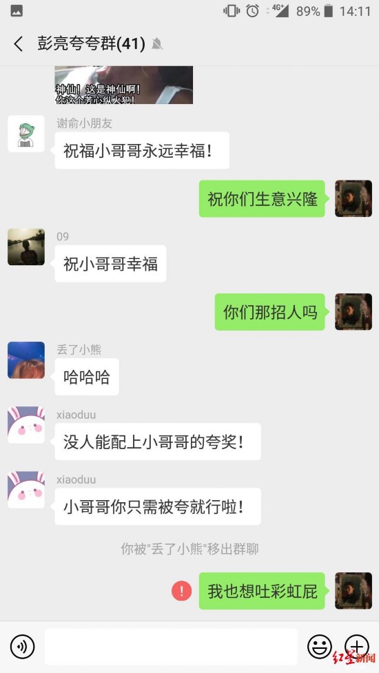 然而,当三分钟服务时间一过,立即结束夸奖,女网友立即被移出了群聊。