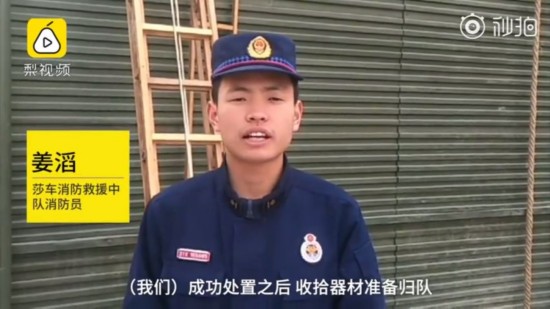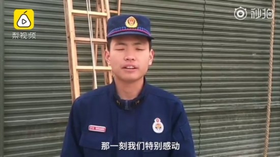 消防员看到后,立刻回礼。