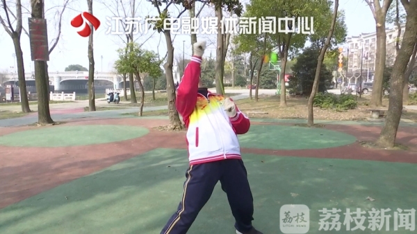 一大早,记者在扬州大水湾公园附近,见到了正在玩九节鞭的梁尚禄老人。只见1米7长的钢制九节鞭在老人手中上下翻飞,虎虎生风,一派高手风范!一段九节鞭热身后,梁尚禄开始练起了空竹,还把九节鞭的功夫融入抖空竹的技法当中。瞧,"鸭子浮水"、"金丝盘头",老人家把空竹抖出了功夫范儿。不过你可别以为这种融合是好练的,梁老刚开始练习时就出了意外,差点住院。
