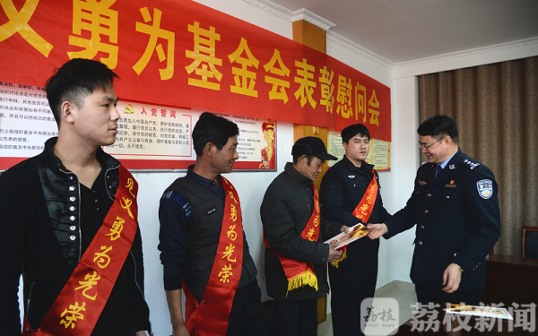 3月12日下午,盐城市响水县公安局、响水县见义勇为基金会联合召开表彰慰问会,隆重表彰近期发生的见义勇为行为,给4名见义勇为人员颁发奖金。