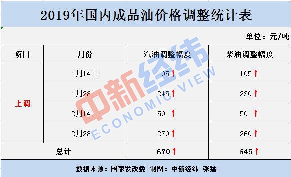 2019年以来,国内成品油共经历了四次调价,呈“四连涨”态势。截至目前,柴油累计上涨了670元/吨,柴油上涨645元/吨,折合升价92号汽油上涨0.53元/升,0号柴油上涨0.55元/升。若本次油价搁浅,2019年的调价格局将变为“四涨零跌一搁浅”。