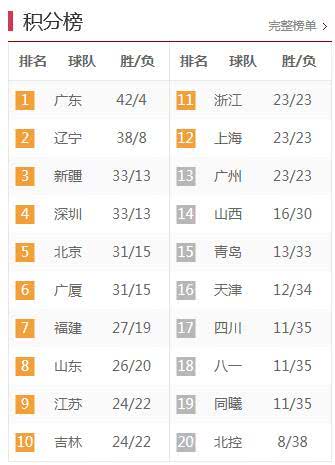 广东力压辽宁第12次获常规赛冠军