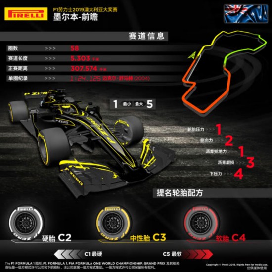 为了进行简化,从本赛季开始倍耐力所选的三种轮胎配方将都以软胎(红色)、中性胎(黄色)与硬胎(白色)标识。但实际上,米兰品牌本赛季依旧会提供五种不同的轮胎,分别从1(最硬)到5(最软)作为区分,“技术型”车迷也能够进行深入了解。