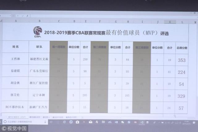 根据CBA公司公布的情况,在各5名候选人中依次选择三位,按照第一选择5分、第二选择3分、第三选择1分进行排序。今日的媒体通气会上,通过公开进行计票、评选,王哲林得到353分当选本土MVP,力压郭艾伦的329分和易建联的224分,阿不都沙拉木和胡金秋分别得到57分和54分。亚当斯得到317分获得最佳国际球员MVP,其他四位外援的最后得分为:弗雷戴特241分、琼斯204分、艾伦-杰克逊147分、兰佩107分。