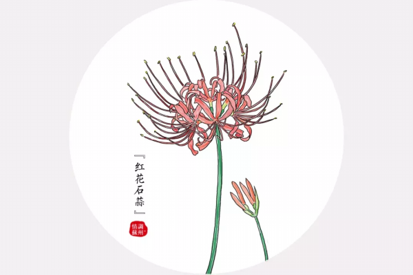 红花石蒜又名“彼岸花”。花期在秋分前后,花开时看不到叶,有叶时看不到花,于是有了“生生相错”的说法。