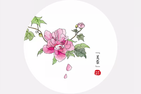 芙蓉初开时呈白色或淡红色,后渐渐变成深红色。《长物志》云:“芙蓉植池岸,如大家闺秀。”