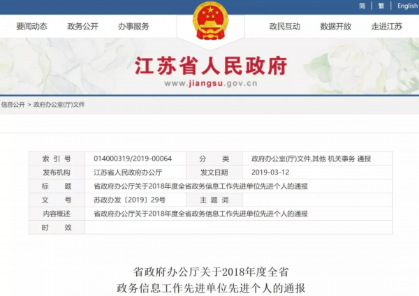 近日,江苏省人民政府办公厅发布《省政府办公厅关于2018年度全省政务信息工作先进单位先进个人的通报》,根据2018年度各地各有关部门报送信息采用情况,决定对97个政务信息工作先进单位、110名政务信息工作先进个人、20篇优秀政务信息稿件予以通报表扬。宿迁这些单位和个人被表扬,有你认识的么?