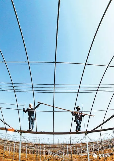 江苏省沭阳县钱集镇致力于推动精准脱贫,今年计划启动10个高效农业扶贫项目。图为钱集镇农户正在安装大棚钢架。