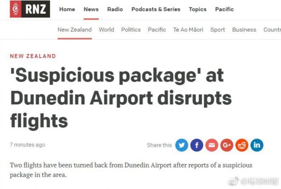 据新西兰广播电台17日最新消息,当天晚上8点10分,警方证实在新西兰达尼丁国际机场(Dunedin Airport)出现可疑包裹,拆弹小组已经接到通知。