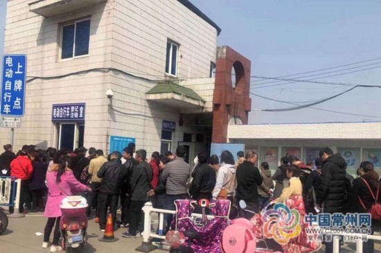 在市公安局交警支队车辆管理所电动自行车上牌点,前来办理上牌的车主排起了长龙。