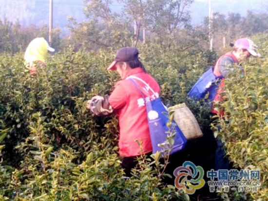 武进区雪堰镇的明前春茶15日正式开采。在雪堰办场最早、规模最大的费巷茶场,60名采茶工正在阳光下采摘早熟品种“乌牛早”。