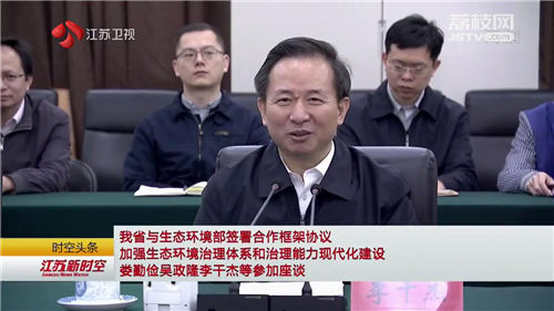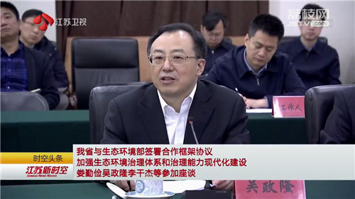 吴政隆介绍了江苏环境保护与治理工作情况,表示江苏将认真落实合作协议,切实加强生态环境治理体系和治理能力现代化建设。