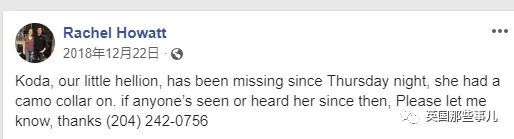 这可把铲屎官Rachel一家急坏了,他们四处寻找,还在Facebook发布了“寻狗启事”,希望能利用网络的力量,尽早找到这只傻乎乎的狗子。