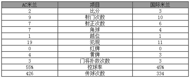 米兰控球率稍占上风,国米射门次数稍多,但总体而言,这是一场势均力敌、非常精彩的德比大战。