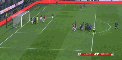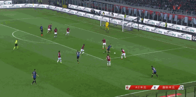 第57分钟,恰尔汗奥卢任意球开入禁区,巴卡约科点球点附近抢在加利亚尔迪尼之前头槌攻门,球顶入球门右上死角!AC米兰1-2迫近比分。