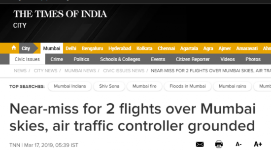 另据印度斯坦时报3月17日消息,印度机场管理局(Airport Authority of India)的一名官员表示,近来印度孟买上空航班数量急剧上升,“我们的空中交通管制官员有能力处理,但不幸的是,事件还是发生了,险些造成事故。”