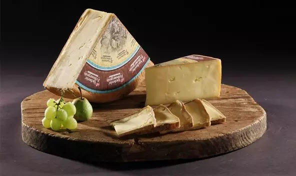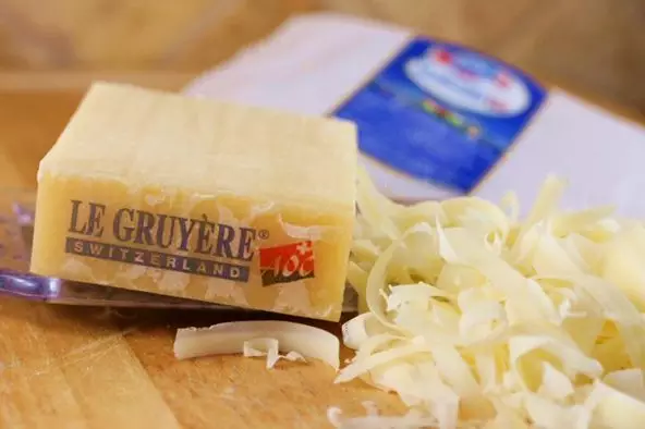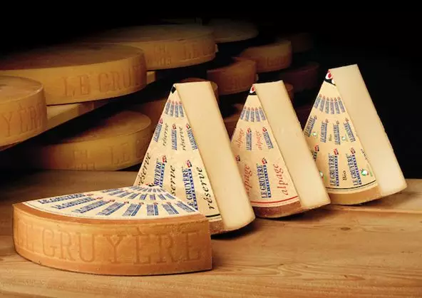 格吕耶尔奶酪(le gruyère)产自瑞士阿尔卑斯西部山区弗里堡州小镇格吕耶尔(Gruyères),也被称为古老也奶酪,制作历史可追溯到十五世纪。瑞士原产的格吕耶尔奶酪切面光滑,没有气孔,呈象牙白色,外表皮粗糙暗黄。制作一块80公斤重的格吕耶尔奶酪,需要800升生牛乳,成熟期至少10个月,是一款典型的硬质奶酪。