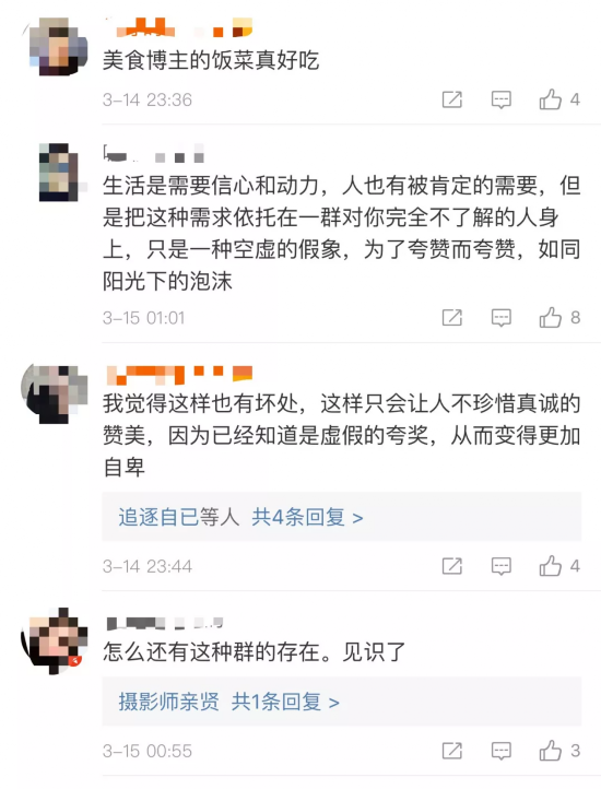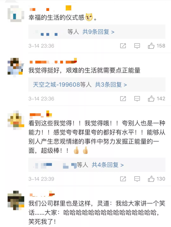 在支持一方看来,加入“夸夸群”是一种生活仪式感,也是增加正能量的好方法——