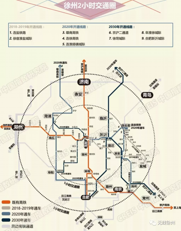 2018年,中国指数研究院发布《全景图解高铁格局,洞悉大国之城谁将崛起》,其中勾画了三大重点高铁交通圈,分别为北京、郑州和徐州。