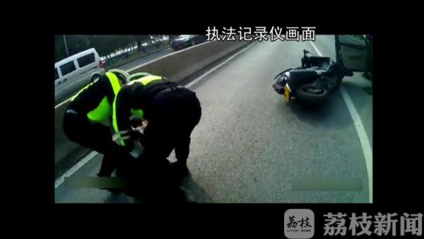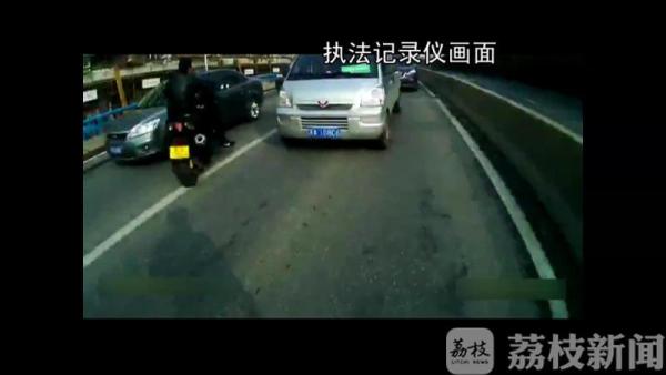 近日,南京交警六大队在幕府西路高架上整治时,一辆摩托车闯了禁区还想逆行逃跑。