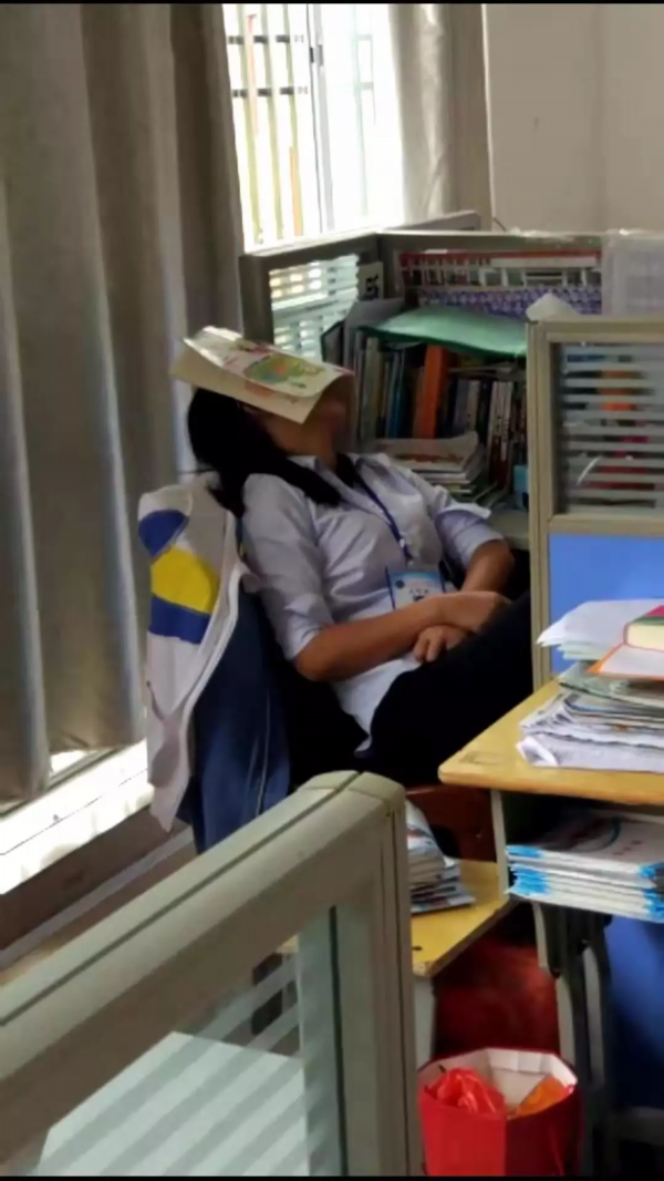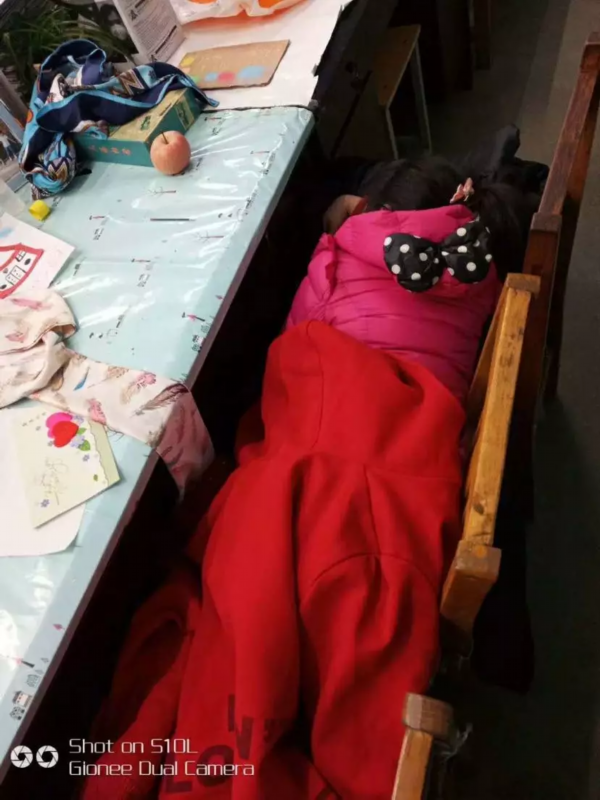 当天她顶着39度的高烧上了一天课,下班后跑到卫生所打点滴时,丈夫偷拍了这张照片:为了不影响第二天的讲课,她一边打点滴,一边为孩子们判卷。