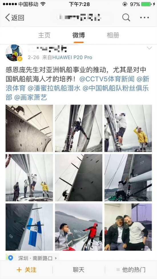 扬子晚报紫牛新闻记者随后在微博平台上找到罗先生的账号,账号上介绍为海南陆客旅游项目开发有限公司常务副总裁,同时还是海南陆客号主帆手。紫牛新闻记者翻阅其微博,发现里面很多内容都与帆船有关,还曾参加帆船比赛。