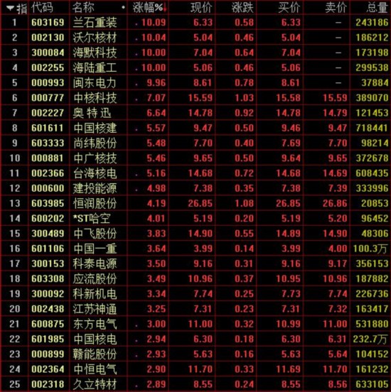 核电概念股表现