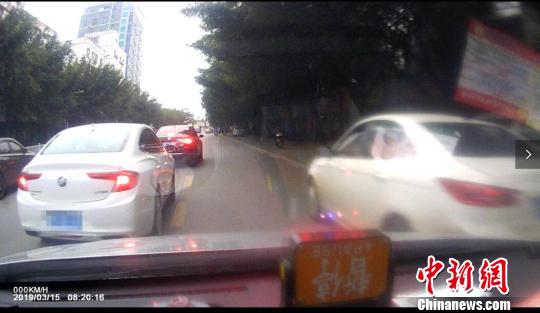 图为出租车行车记录仪显示,前方白色轿车在其前方行驶。受访者提供