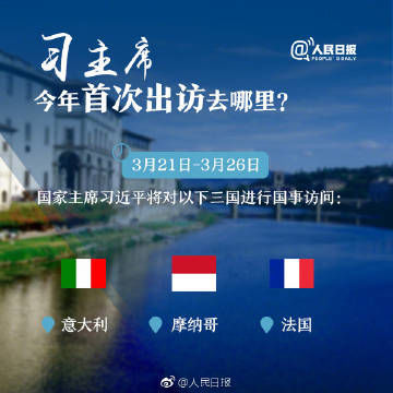 3月21日至26日,国家主席习近平将对意大利、摩纳哥、法国进行国事访问。习主席的新年首访,为何选择这三个欧洲国家?此次出访又有哪些精彩看点?提到这三个国家,你会想到啥?