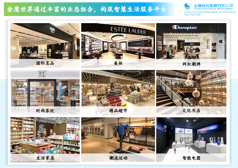 金鹰商贸集团各连锁店充分重视高质量商品资源的积累与发展,聚焦树立标杆品牌,店铺提档升级及提升卖场坪效,不断加快引入时尚潮流新品牌的步伐,持续强化区域龙头地位。金鹰商贸集团顺应消费升级趋势,持续升级拓展集团的商业品牌资源,已长期累积并持续更新引入10000多个国际著名和国内特色品牌,形成强大丰富的集团品牌资源库。