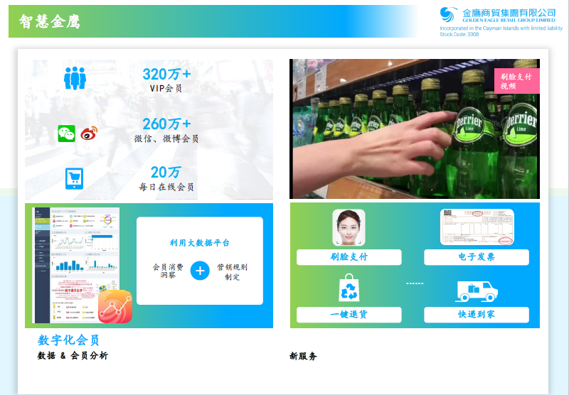 一方面,基于对会员消费数据长期积累而形成的大数据平台,实时追踪会员消费行为和习惯,为集团各连锁店制定营销规则和方案提供有效参考。在此基础上,金鹰商贸集团智慧金鹰系统不断新增各项人性化服务,如刷脸支付、电子发票、一键退货和快递到家等,更好的满足广大顾客和会员的各项需求。