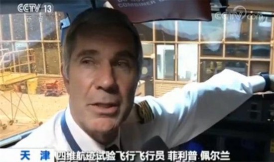 四维航迹试验飞行飞行员菲利普.佩尔兰 :这次飞行的主要目的,就是验证我们能不能在给定的时间,精确地过这个航路点,我们做了三次测试,第一次误差两秒,第二次完全准时,第三次误差一秒,所以说这次飞行是完全成功,非常开心。