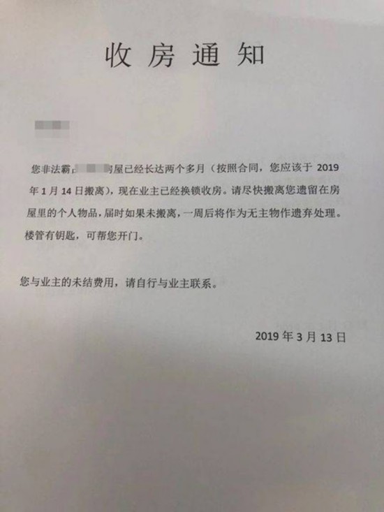 封面新闻3月20日消息,2019年3月,一张“收房通知”贴在了刘江的房门上。