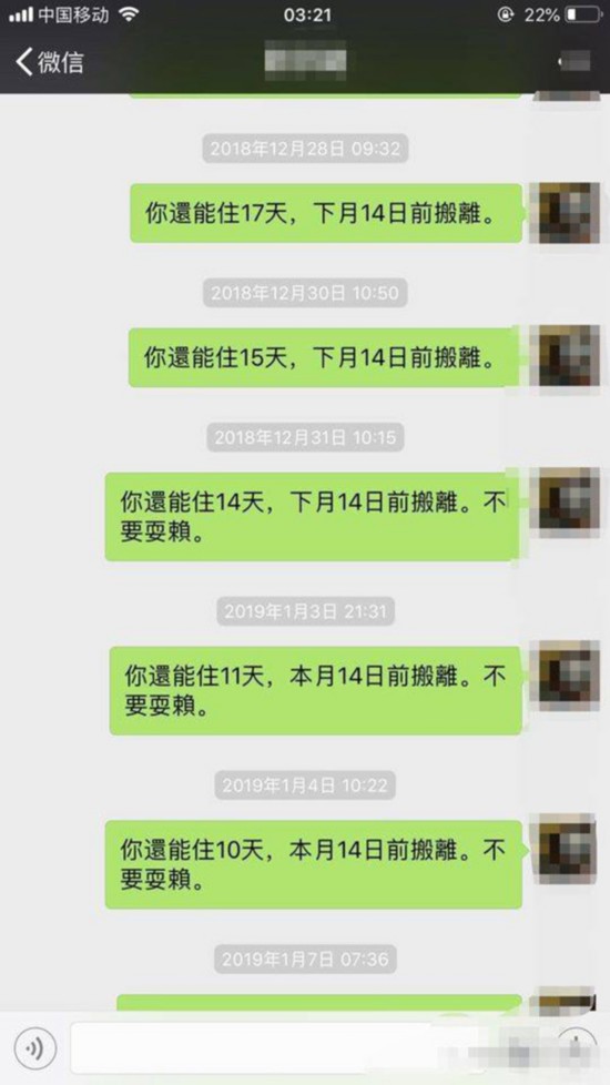 记者也曾多次尝试联系刘江,结果发短信不回,打电话不接。不久前,唐文给了限期搬离书面告知后,断了房子的水电,似乎也依然没起作用。