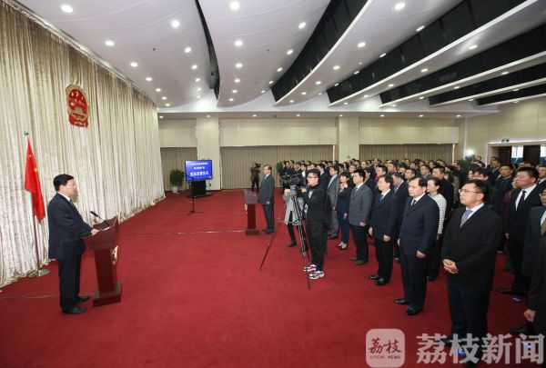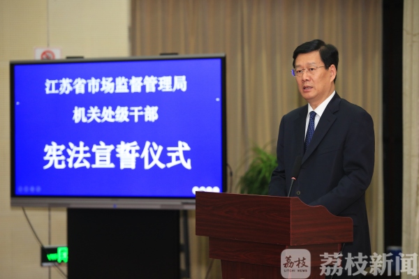 荔枝新闻讯 3月21日,江苏省市场监督管理局举行机关处级干部宪法宣誓仪式,新任命的173名机关处级干部集体进行了庄严的宪法宣誓。省局局长、党组书记朱勤虎监誓,副局长、党组副书记黄运海主持宣誓仪式。