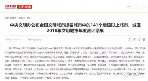 2018年文明城市年度测评结果