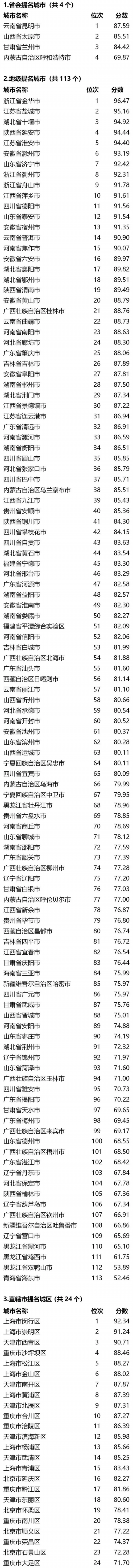 在全国113个地级提名城市中