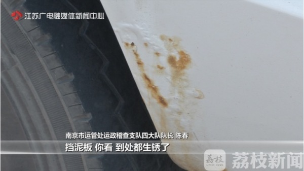 南京市运管处运政稽查支队四大队队长陈春介绍:“不具备营运车辆资质,也就是说它买不了营运车辆的座位险。”而且执法人员现场检查发现,这辆依维柯客车是二手车,挡泥板等处都已经生锈,轮毂、轮胎都有一定的磨损,显得很旧。“按照营运车辆检测标准的话,这个车检测线不一定能过关。”