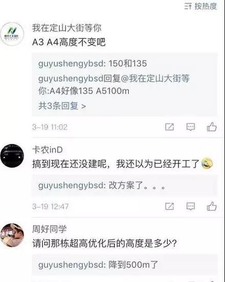 江北新区规划管理部门回应:“目前正在研究过程中,有可能会要降低高度,还没有定论。”