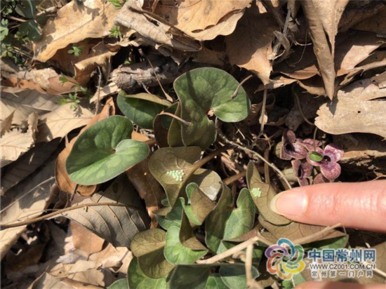 在另一处小山坡上,江苏蝴蝶观测中心连云港负责人吴丽业发现了一丛一丛的杜衡,这是中华虎凤蝶的寄主植物,这表明这里很可能是雌性“小虎”的产卵地。让他大为兴奋的是,他很快就在一片杜衡叶片下面发现了“小虎”的虫卵。听到这个好消息,众人立刻围拢过去。