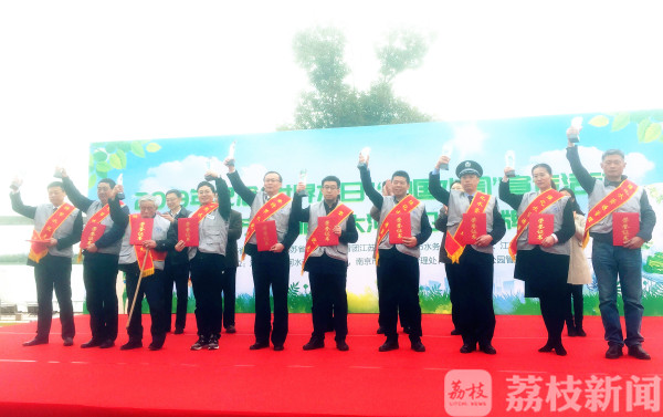 今天上午,在南京市青奥公园举办了“世界水日”、“中国水周”宣传纪念活动。活动现场,“江苏省首届十大河湖卫士”正式揭晓。据了解,通过前期的寻找、推荐,全省总计挖掘出150多名来自各行各业的爱水之人,他们用自己的实际行动护水卫水。经过公众投票、专家评选,最终徐国忠、吴时强、田峥嵘等十人荣获首届“河湖卫士”。田峥嵘代表获奖人士发言。