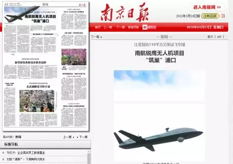 南航锐鹰无人机项目“筑巢”浦口