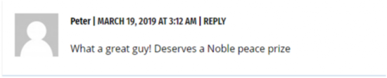 还有外国网友说,“他值得一个诺贝尔和平奖”↓
