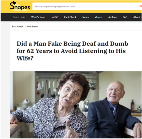 (Snopes:一男子为了不听他妻子讲话装聋作哑62年?)