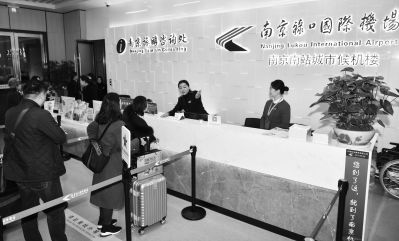 去年年底,南京禄口国际机场南京南站城市候机楼开始运行。旅客在高铁南京南站即可享受机场的航班查询、值机订座、机场巴士、行李托运等一站式服务。 本报记者 冯芃摄