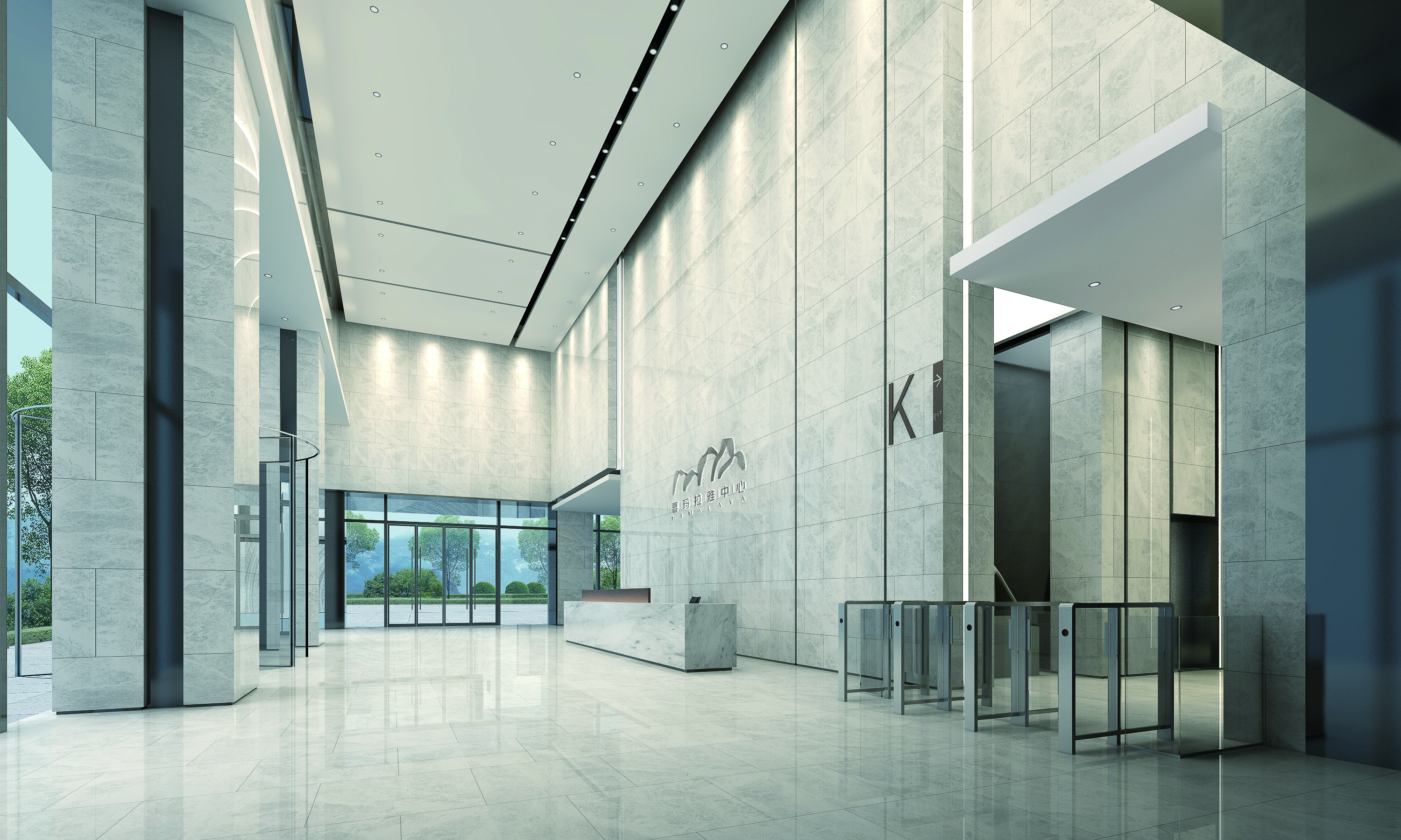 (证大喜玛拉雅写字楼大堂效果图)
