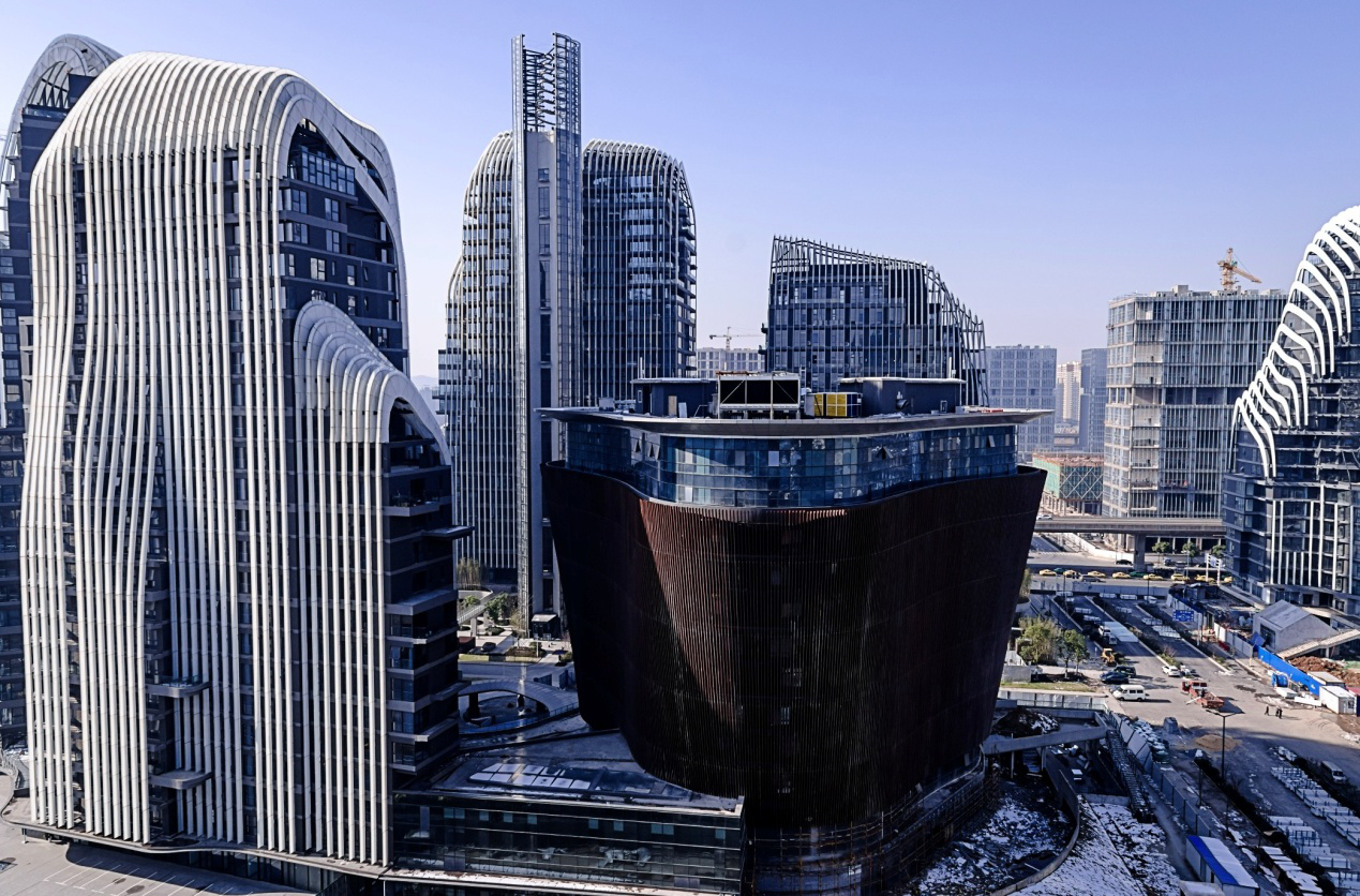 环顾南站周边项目,喜玛拉雅凭借其夺人眼球的形象脱颖而出。高山流水般的建筑轮廓出自“东方版扎哈·哈迪德”——建筑大师马岩松之手。